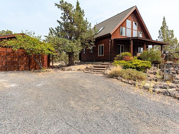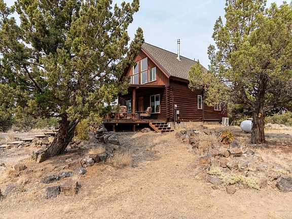 Rustic log cabin on 2.41 acres of private land with views of the Cascade Mountain Range. Open, great-room floor plan w/master on main and beautiful wood detail thru out. Marble tile accent wall and hearth for attractive propane burning stove. Spacious loft w/French doors to large deck and abundant windows. Drenched in natural light. Immense, covered, front porch and sizable, covered, back deck to sit and enjoy your territorial views. Adjacent to public land. Enjoy the Central Oregon lifestyle you deserve!