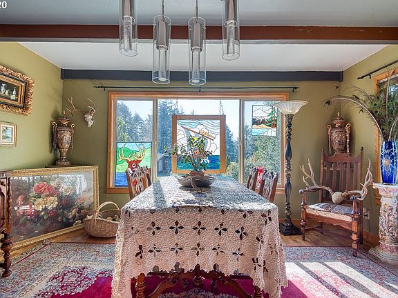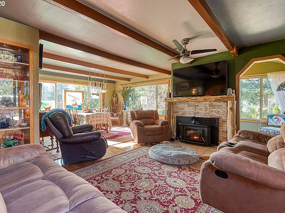 Homes offers 4bedrm 3 bath w/open kitchen floor plan. Huge pantry & dog wash sink in laundry area.SS appliances w/Propane cook stove & dryer hookup. PRIVATE, Beautifully Landscaped yard w/yr round Southern exposure & raised garden beds. Views of Creek & old growth trees w/large deck. 2car garage w/Carport & RV PARKING. Tool shed & 2 woodsheds plus a working Hot Tub! New certified wood stove & oil heat. House is wired with cat 5 for high speed internet. LOTS of covered space for entertaining.