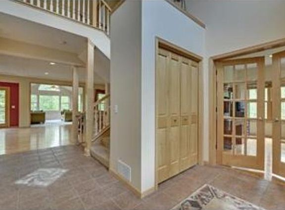 This custom built walk-out 2 story is situated on the most scenic & private lot around. Home offers 6 bedrooms, 4 baths and 3 separate garages (8 cars worth)! The flow is superb and offers many entertainment options! Great Room features eye catching birch floors and 9" race track ceiling! Porch is 1 of a kind! Private deck off the Master along with wonderful bath & closet! Lower level has heated floors, 2nd fireplace & hot tub! 1.75 acre lot w/pond! High end finishes! You won't be disappointed!