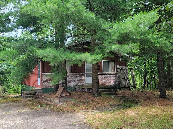 Located within Forest Lake Property Owners Association you'll find this cute weekend getaway, summer home! Could easily be your year round home also. The house is tucked towards the back of the wooded lot and overlooks Association common ground that is fully wooded and home to so much nature & wildlife. Built in the late 70's this house has stood the test of time and is in good condition. A bit of updating could transform it! The open living area includes the living room with wood burning fireplace, kitchen & dining area. Down the hall you'll find 4 bedrooms. Bring the entire family & your friends. There's room for everyone. One bedroom has a slider to the balcony style deck. The main level also has a full bathroom. Downstairs you get to choose. Make this an extension of your living quarters and use it as a family room/rec room. There is a wood burning fireplace on this level also. You'll also find a half bath and mechanical room. This level is also the 2 car garage. There is enough space to have the garage and partition it off to have adjoining living space. The roof was re-shingled in 2016 and there are vinyl windows. The wood siding has a brick accenting the front. Enjoy the assoc club house, parks, playground & beach just a short golf cart drive away. Nearby golf courses, restaurants, a brewery & many other lakes. This is the affordable get away you've been waiting for!