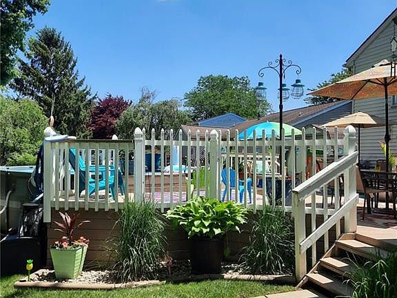 Spacious open floor plan features high ceilings. Kitchen overlooks living room and opens to dining area, features granite countertops and rope molding kitchen cabinets. Large rec room with ample space to entertain. Living room features gas fireplace and large windows overlooking backyard oasis. Backyard features patio & gazebo, above ground pool and large deck.