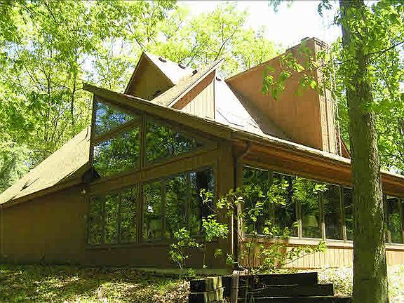 Unique custom built home. Secluded amoung mature trees. Open and flexible floor plan. L-shaped great room. 3 car garage is studio but doors and openers are there. Master also french door that goes out to great room. 3rd floor with walk up attic area. 32X40 pole barn with walk up storage. Truly one of a kind.