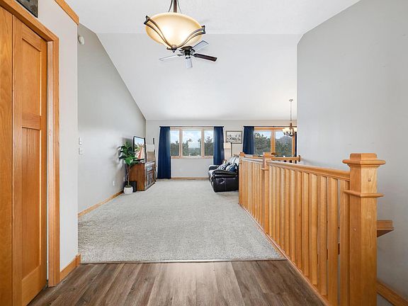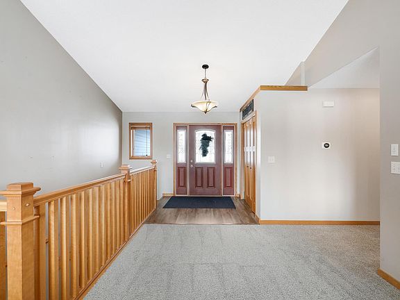 Stunning walkout rambler with brand new roof on 5 acres! This is the country living home you’ve been looking for. Vaulted main level with open floor plan. Spacious kitchen with stainless appliances, walk in pantry and 3 paneled doors. Main level laundry/drop zone. 3 bedrooms and 3 bathrooms on the upper level including a private primary ensuite with walk in closet. Finished walk out lower level features large bar and game room with tongue and groove paneling, bright family room, and full bathroom. Concrete driveway with wrap around to huge maintenance-free deck, 3 large patios, including fire pit area ensure lots of space for outdoor entertaining. Bring your toys! Heated, insulated, extended 3 car garage plus a 40x60 pole shed with 16x14 overhead door, concrete floor and it's own entrance. Don’t miss all the bells and whistles at this beautiful home!