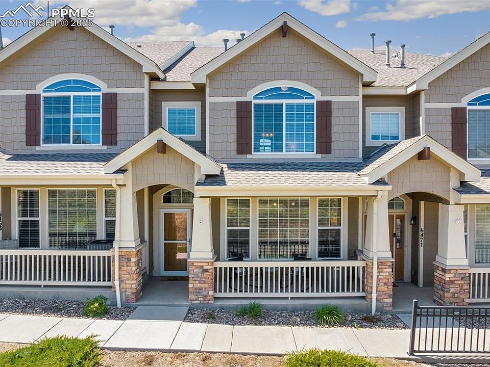 This gorgeous and spacious townhome in Northeast Colorado Springs is move-in ready and perfectly located! Featuring an incredible floorplan with two bedroom suites, each with walk-in closets and attached baths, this home offers both comfort and versatility. The primary suite is large, boasting a luxurious 5-piece bath and an oversized walk-in closet. On the main floor, you’ll find a bright and open living room with a cozy gas fireplace, an open kitchen with stainless steal appliances and modern tile backsplash, spacious dedicated dining area, and a convenient half bath. The upstairs laundry adds ease to your daily routine, and central A/C keeps the home comfortable year-round. Enjoy the charming front porch overlooking open space, perfect for relaxing outdoors. The attached 2-car garage offers plenty of storage and convenience. The unit is located ideally situated within the complex, offering a quiet and peaceful setting. Located just minutes from parks, trails, and all the shopping, dining, and entertainment the Powers corridor has to offer, this townhome combines style, space, and an unbeatable location!