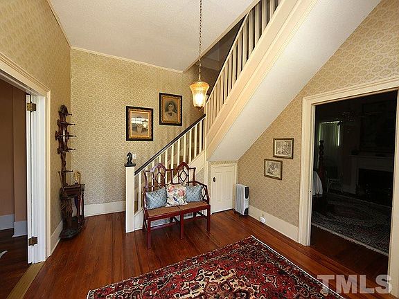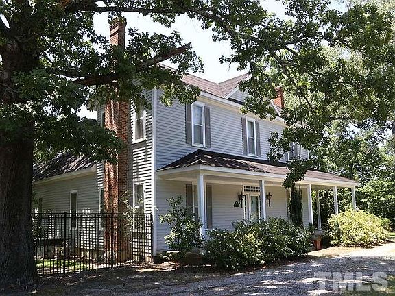 Lovingly maintained 1889 original family home on 5.45 Acres (open and wooded). Just minutes from Raleigh, 40 & 42, shopping and dining. 5 Porches. 5 Fireplaces. Fenced yard. 12ft Ceilings. 3 out buildings & 2 barns. Recent updates include HVAC, HWH, Ext. paint (Including outbuildings), Kitchen countertops. Security System. Transferable Termite Bond. Call La for more details.