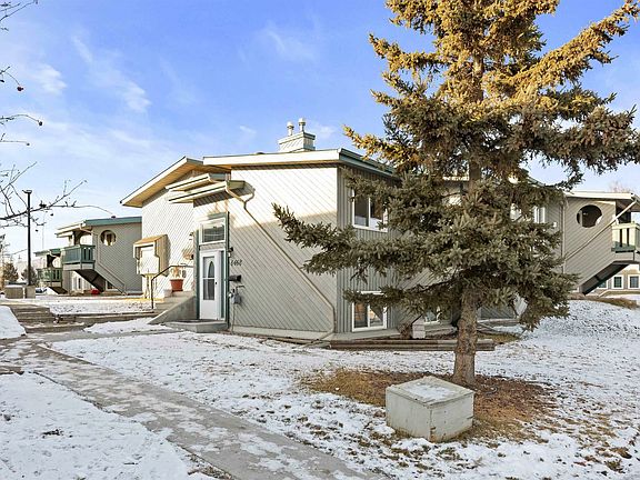 THREE BEDROOM townhome in Callingwood! This bright Bi-level features three nicely appointed bedrooms slightly below grade making the living space well over 1000 Sq. feet with large, full size windows. This home features newer modern paint colours, carpet and laminate flooring, a funky geometric wallpaper accent wall, newer front door and light fixtures. The lovely kitchen has white cabinetry, gorgeous patterned tile backsplash, stainless steel fridge and stove, a dishwasher, and new faucet. Primary bedroom has a walk-in closet with a barn door. The bathroom, completely renovated in 2019, even has in-floor heating! The complex has new concrete walking paths throughout (installed 2023) and this unit has new concrete steps (2022) and new wood floor and rails on the large covered balcony (2020). There is main floor laundry and storage, an assigned parking stall directly in front of the balcony, and Callingwood Marketplace is walking distance directly across 178 St.