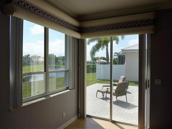Super clean property located in a gated community of Boca Pointe ''Club membership available, NOT MANDATORY''. The property faces the stunning private lake view and extra enclosed patio space located on the side of the house with room for a barbecue station. Single-story 3 bedrooms 2.5 bathrooms 2 car garage, hurricane accordion shutters throughout. Inside this well kept turnkey home, it includes a newer water heater and AC unit replaced in 2009, has crown molding and neutral white tile floor. This model features a split bedroom floor plan, formal living room, formal dining room, family room and eat-in kitchen. Close to shopping, fine dining, parks, minutes to Town Center Mall, and down town Mizner. “A” rated school district, Verde Elementary, Boca Community Middle, Boca Community HS. Information is deemed to be reliable, but is not guaranteed.