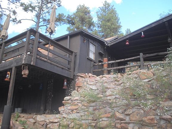 Perfectly charming little cabin nestled on Prescott National Forest.Remote area with very few neighbors. Impeccable condition! Lots of retro charm in this cabin. Patios & sitting areas make this home as nice outside as it is inside. Long time owners hate to part with this hard to find cabin. Sizable water cistern works well. Plenty of parking. Detached shed for tools & storage. Antiques do not convey. Upstairs loft works well for master brm. Downstairs bedroom too. Kitchen has antique one piece sink, very hard to find in such great condition. Charming in and out!