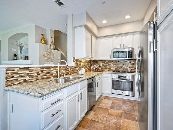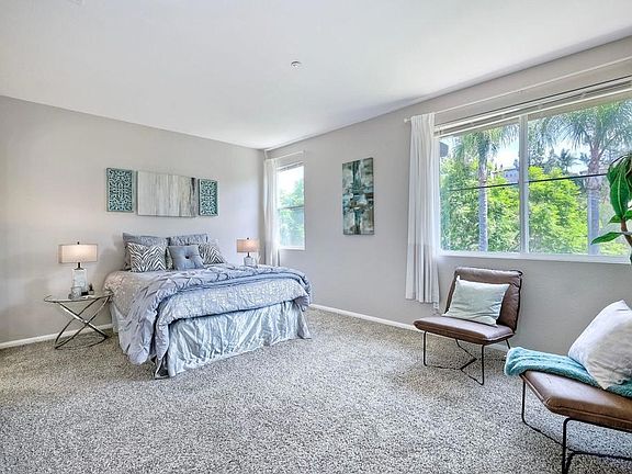 Rarely available! A large green lush yard, an amazing amount of natural light and lives like a detached home. Welcome to 6468 Terraza Portico, Carlsbad, CA 92009! This stunning 3BR, 2.5BA home in the gated community of Portico spans nearly 1500 sq ft and offers a seamless blend of elegance, convenience and truly feels like a detached home with a large expansive yard. This home ensures year-round comfort and includes newer A/C for those days after lounging by the community pool, you want to cool down in the comfort of your own home. On the first floor, enjoy the spacious open floor plan filled with natural light, featuring tiled floors, modern updated cabinets, granite countertops with stylist backsplash, and newer stainless-steel appliances, you also have a half bathroom and direct access to his and her garages with custom overhead racks with an abundance of storage. Upstairs the primary suite is a true retreat with an extra-large bathroom, vanity area, walk-in closet and views into your lush green yard. There are two additional bedrooms and full bath upstairs with private shower/tub combo. Outdoors, a large backyard awaits for entertaining your friends and family. Residents have access to 2 pools/spas (one being heated year-round), walking and hiking trails, as well as the Rancho Carrillo Club House. You are located close by to Bressi Ranch Village Center and La Costa Town Center with top-notch shops and restaurants. Live an active lifestyle outdoors with world class resorts nearby with golf and Alga Norte Park with sports fields, skate park, playgrounds and Carlsbad Community Swim Center along with Leo Carrillo Historic Park. This home is perfectly situated for a vibrant lifestyle. Complex is FHA/VA approved.