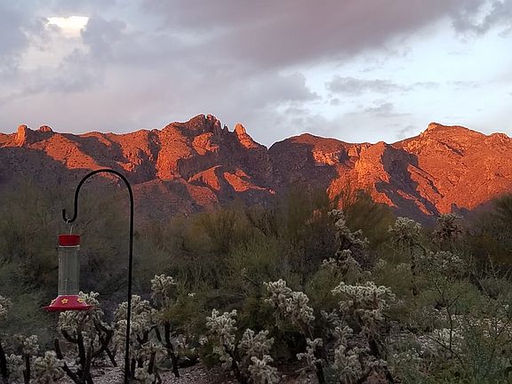 I am selling this stunning townhome that provides gorgeous unobstructed views of the Catalinas and Finger Rock from it’s very private, end lot. Call me at 520-400-0274 for inquiries and viewing. With 2 BR, 2 bath plus office, it also has front and back private patios to enjoy the desert and wildlife. In addition to the over-sized windows that frame the mountains, many skylights provide plenty of natural light. This home boasts open floor plan, many upgrades, security shutters, cozy wood-burning fireplace, and so much more in its 1467 sq ft. In a much sought after area, this is close to great shopping, restaurants and hiking trails. Meet your friendly neighbors at the community pool across the street. Granite counter tops in kitchen and bathrooms, 2 jacuzzi tubs, 2 private flagstone patios. Best lot in these 70 homes on 70 acres established and serene community. Scored concrete floors are easy to maintain and were recently cleaned and resealed to provide a warm shine.
