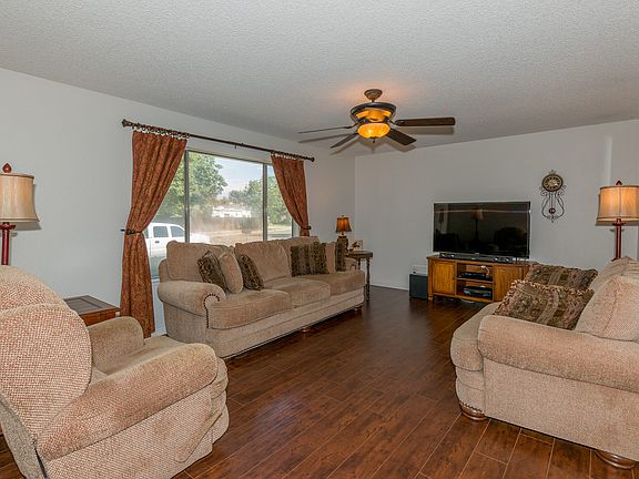 Sensational 3 bedroom 2 bath hallmark home, nestled in a delightful neighborhood and located in award winning Clovis Schools. Upon entering the foyer, you will feel the warmth and charm instantaneously. Living room is open and spacious with beautiful flooring throughout the home. Kitchen has been updated with a smart design,granite counter tops, breakfast bar,corner window(viewing the front yard),Culligan water system, and is open to the dining room and family room. Just off the kitchen is a utility room for your laundry with storage and access to the pool area. As you walk down the hallway you will be delighted to see that the 2 bedrooms are fairly spacious and the second bath is practical with dual sinks. Master bedroom has a private bathroom and a walk in closet with custom organizers. The back yard has endless possibilities. This over sized lot has a gorgeous, in-ground sparkling pool, above ground hot tub, storage shed, spectacular covered patio, and potential RV parking.