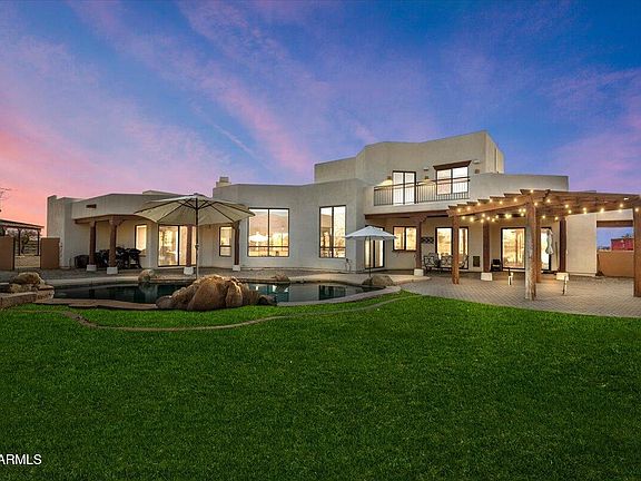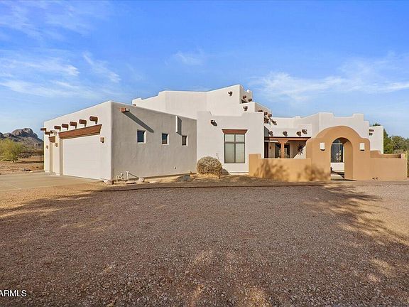 GOLD CANYON EQUESTRIAN RETREAT! THIS BEAUTIFUL AND UNIQUE PROPERTY HAS EVERYTHING YOU COULD DREAM OF ON A SPRAWLING 3.34 ACRE LOT WITH VIEWS ONLY IMAGINABLE. THE MAIN HOUSE IS 3,893 SQ FT, BUILT IN 2004, 3 BEDROOMS, 3 BATHS, OFFICE, DEN, BONUS ROOM AND A SPACIOUS LOFT W/ WET BAR AND LARGE BALCONY W/ PANORAMIC SUPERSTITION MTN AND DINOSAUR MTN VIEWS. 3.5 CAR GARAGE, SWIMMING POOL. THE GUEST HOUSE IS BRAND NEW (FINAL STAGE OF COMPLETION) 740 SQ. FT. WITH LARGE LIVING AREA, ONE BEDROOM, ONE BATH AND RV GARAGE. BUILT TO HOLD 8 CARS IF LIFTS WERE INSTALLED. THE KENTUCKY STYLE HORSE BARN HAS 5 STALLS, WASHING STATION, & 12X22 AIR CONDITIONED TACK ROOM. WIFI SMART BARN. PLENTY OF CORRAL SPACE. LIT ARENA FOR NIGHT TIME RIDING. PROPERTY CONNECTED TO EQUINE TRAIL GIVING DIRECT ACCESS TO STATE LAND