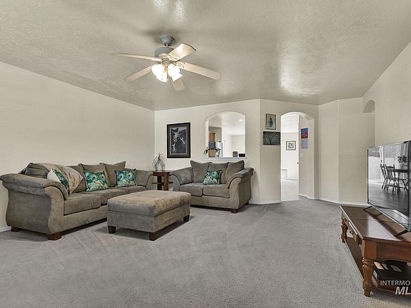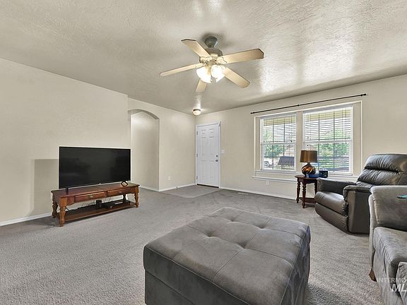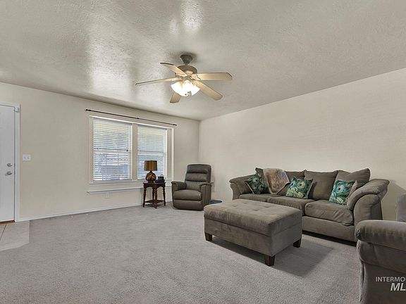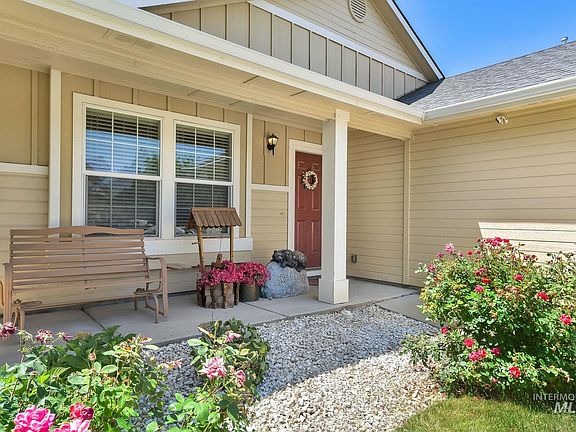 Charming residence located in the delightful southwest Boise area boasts abundant natural light and recently refreshed paint. The spacious great room seamlessly connects to the open kitchen featuring an island, breakfast bar, generous pantry, and a sliding glass door leading to the backyard patio. The master bedroom is generously sized, complemented by a master bath offering dual separate vanities and a nicely proportioned walk-in closet with convenient access to the laundry room. The fully fenced backyard showcases a designated garden space complete with a dedicated sprinkler line. Residents can enjoy the amenities of a community pool and an impressive playground area. Well-maintained and awaiting your presence, this home is move-in ready!