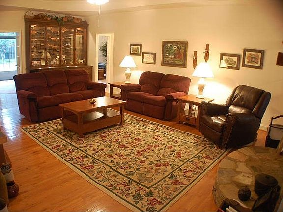 Unique property tucked away in secluded privacy on almost 2 acres of level, landscaped land. This four-sided brick ranch with screen porch features full basement with 3rd car garage, oversized master with vaulted ceilings, palladian window & sitting room, gigantic master bathroom with shower to fit the whole family, and large double sided walk-in closet. Home sits far off the road and is very quiet & serene with HUGE workshop, 30x50, with 3 garage doors, lots of place to park vehicles or toys. You can definetly run a business from this home. Lots of options & space to do whatever you want. Great schools. Close to LAKE.