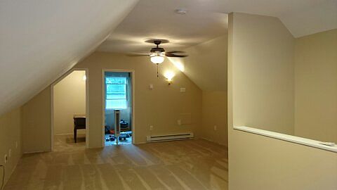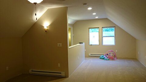 Nice open kitchen and dining with appliances and island, slider to level yard. Newer master suite with sitting area and master bath. Large foyer to 2 car garage with newer doors and 30 X 25 play room above garage, sauna. Full basement for more expansion. Nice level yard with pool and swing set. Sits privately off the road. Small brook for fishing.