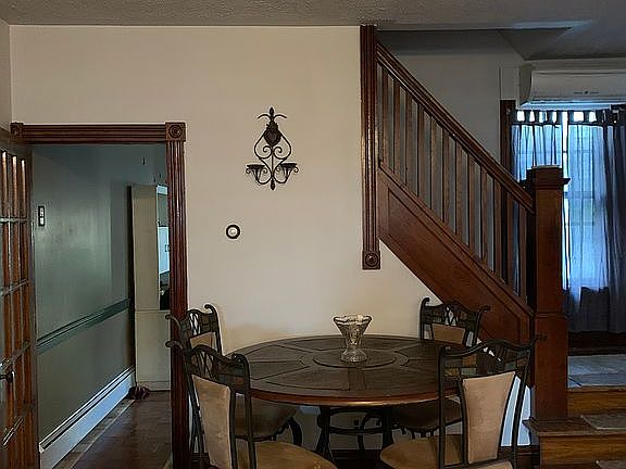 4 story row home with 4 bedrooms, 1 bath. Finished cement floor basement, remodeled, extra large bathroom, 4 bedrooms, living/dining room, family room off kitchen, stone patio and backyard, large shed for storage. All appliances included, furniture available for purchase.