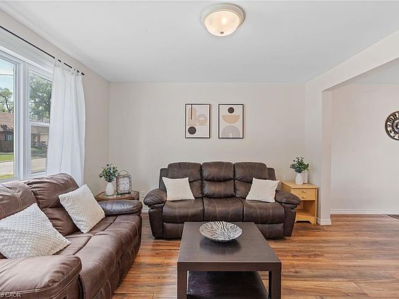 Step into this beautiful 2 bedroom, 1 bathroom gem, perfectly positioned on a sunny corner lot. From the moment you walk in, you're greeted by a bright, open-concept main floor that feels fresh, airy, and effortlessly welcoming — freshly painted and move-in ready! The kitchen is a standout, thoughtfully renovated just 7 years ago with sleek granite countertops added 5 years ago, making it as functional as it is stylish. Whether you're hosting friends or enjoying a quiet night in, this space delivers. Enjoy the perks of two private driveways offering tons of parking — a rare bonus! Major upgrades offer peace of mind: newer windows (less than 10 years), updated siding (2 years), and a solid roof (2018). The furnace, A/C, and hot water tank are just 1 year old and all owned — no rentals here! Downstairs, you’ll find a dry basement with fantastic ceiling height — a blank canvas ready for your dream rec room, studio, or even a future in-law suite, thanks to the separate side entrance. Outside, a 2-year-old shed offers the perfect hobby space or extra storage. Tucked in a convenient location close to highway access, parks, shopping, and more, this home is ideal for first-time buyers, downsizers, or savvy investors looking for income potential. Don’t miss your chance to own this bright and beautiful home — the perfect mix of charm, updates, and opportunity!