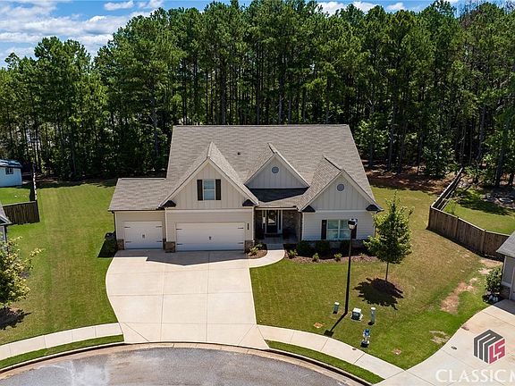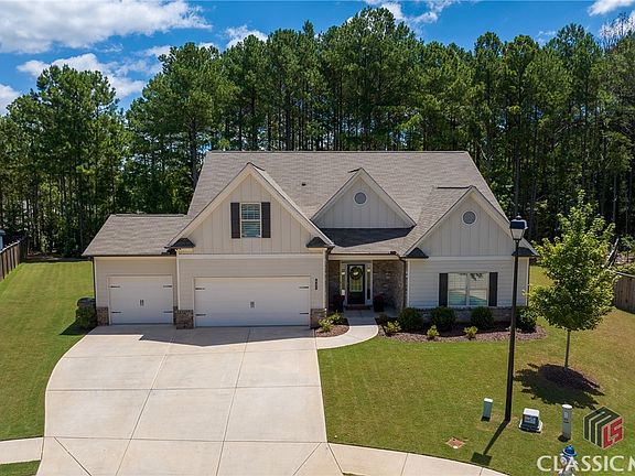 THIS ONE WILL CHECK ALL YOUR BOXES! This 4 year old beauty located in the convenient neighborhood of Charlotte Estates has been meticulously maintained by the original owners. This spacious one and half story home features an open plan. The elegant high ceiling hall foyer welcomes you into this amazing home! The kitchen is a chef's dream with loads of cabinets, lots of granite counter space, a massive granite island, stainless steel appliances and a great gas stove. The oversized dining area will accommodate seating for 8-10. and is steps away from the covered porch with a wood burning fireplace - a perfect place watch the Dawgs or just relax. The great room is equipped with gas logs, adding to the ambiance of this open area. The main living area has LVP flooring, all bedrooms have quality, like new carpet The owners suite will easily accommodate a king size bed and other pieces of furniture that you might have. The attached owners bath features tile flooring, a double shower and double vanity. There are also 2 spacious family bedrooms and baths on the main level. Upstairs, you will be surprised at the great usable space. It is currently being used as a large guest suite with its own bathroom. The first floor laundry room/ drop zone is so convenient, steps from the kitchen and leads to the 3 car garage.