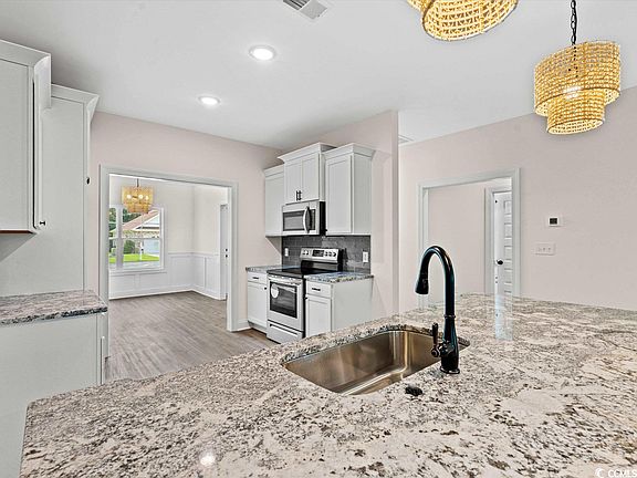 Introducing a charming, just completed Coastal-style home located in the sought-after Colonial Lakes community! Now move-in ready, this 4-bedroom, 3-bathroom home offers the perfect blend of timeless elegance and contemporary comfort, situated within the coveted North Myrtle Beach schools attendance zone. The inviting coastal design, complemented by the home's proximity to the beach, sets the stage for the tasteful interior. The open-concept floor plan creates a warm atmosphere for entertaining guests, while the spacious formal dining room is ideal for hosting gatherings and special occasions. Relax with the ambiance of the fireplace (electric, flame only or with heater) in the living room. At the heart of the home is a well-appointed kitchen, featuring granite countertops, modern appliances, and stylish fixtures. The seamless integration of LVP flooring throughout the master bedroom, main living areas, kitchen, and bathrooms lends an air of sophistication, while plush carpeting in the guest bedrooms offers a cozy retreat for loved ones. The comfortable master suite includes a roomy walk-in closet and a well-designed en-suite bathroom, where you can unwind in the beautiful tile shower and relax after a long day. The three additional bedrooms and two full bathrooms ensure ample space and privacy for residents and guests alike. Step outside to the tranquil back porch, where you can enjoy the fresh air and peaceful surroundings. The thoughtfully designed outdoor space provides the benefits of low-maintenance landscaping, allowing you to spend more time enjoying your coastal retreat and less time on yard work. Additional features of this delightful home include a 2-car garage, modern light fixtures, and quality plumbing fixtures, all carefully selected to complement the coastal aesthetic. Don't miss the opportunity to make this charming home your reality! Schedule a private tour today and be one of the first to experience the thoughtful craftsmanship and tasteful design of this lovely residence in Colonial Lakes.