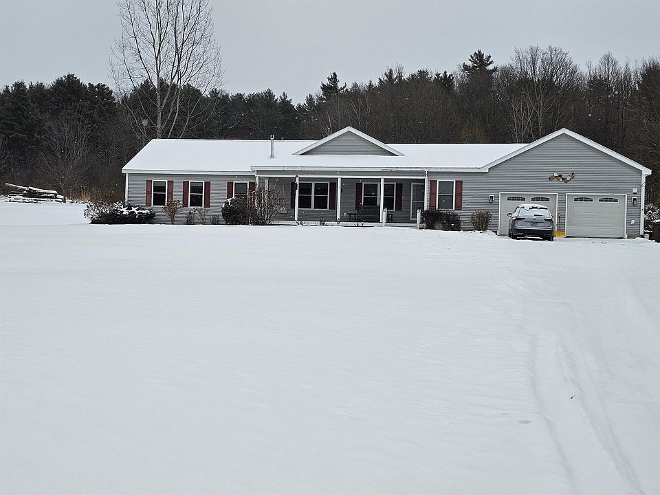 Situated on 6 1/2 acres, this spacious Ranch home offers the best of living from first time home ownership to retirement. 13 years young, this three bedroom, two bath home sits far off the road and offers well thought out living spaces and ease of maintenance. Cherry floors are throughout the open concept living space, with an exceptionally large living room with a gas fireplace, a dining room with a slider to the back deck and a kitchen even a chef would envy. The kitchen is a masterpiece with endless counter space and cabinetry along and top of the line appliances. Down the hall is the primary en-suite on one side and 2 guest bedrooms and another large bath on the other. There is a separate spacious laundry room with bathroom off the back entry of the house, for easy entry after a long soak in the hot tub or a day of gardening. An oversized storage closet is perfect for your cleaning items, mops, brooms and vacuums. A covered front porch, perfect for rocking, a large back deck, an oversized 2 car garage with ample storage, and large basement help to round out the entire package that this property offers. Single level living at its best!