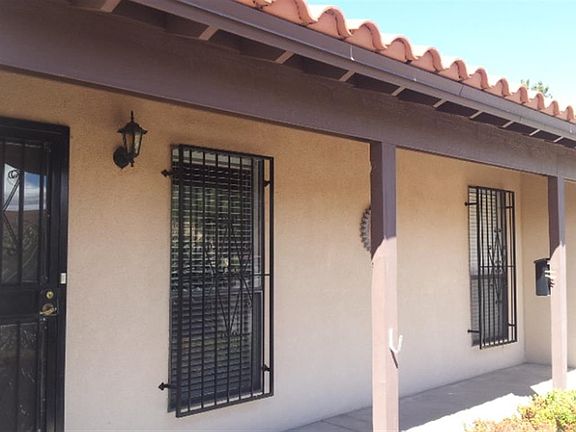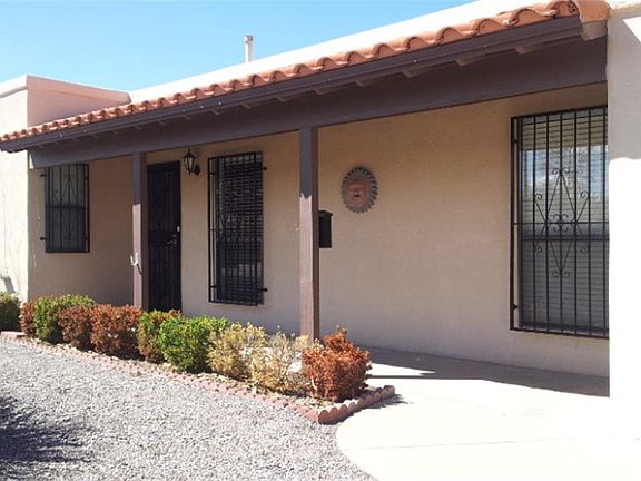 Lots of value here. The southwestern style & design home offers 1592 sq feet of living space, 3 beds/ 1 3/4 baths and 9 x 11.6 office that is located off the garage with carpet, cooling and exterior door to the backyard. The living room has a built in fireplace/ stove and beamed ceilings. The kitchen has newer appliances, there is a large utility room with built in cabinets, the master bedroom has beamed ceilings the master bath has been updated, there are double pane windows with blinds throughout plus wrought iron works on windows, large fully enclosed back yard with lawn and sprinkler system RV access & RV hookups. The design home is beautiful, you enter through a large covered courtyard and the back yard has a large covered patio for your enjoyment. Easy to show.