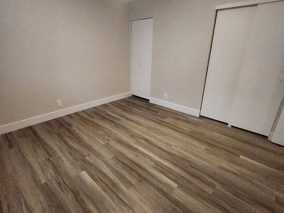This apartment features new paint and laminate flooring throughout, along with A/C. The unit includes two parking spots, one of which is covered by a carport. Garbage, water, and sewer are included in the rent.