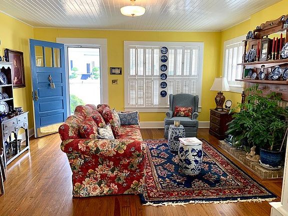Cottage Style home w/lots of charm! This home has lots of character w/wood floors throughout that have been refinished as well as tongue-n-groove ceilings. Nice large front porch that enters into the family room. Family room w/ fireplace that has been reworked & functional w/beautiful antique mantle. Dining room open to the family room. Kitchen w/granite countertops, breakfast area, & serving cabinet with granite as well. Large master bedroom w/a sitting room. Sitting room has built-ins & lots of windows. This room can be used as den, office, or nursery. Nice wide hallway w/walk-in closet between two bedrooms. Hall bath has built-in cabinets, updated flooring, vanity, toilet, & lights. Guest bedroom w/ walk-in closet. Laundry is located off of the kitchen but does not have an air vent. Detached double garage (24x42) w/extra room on back that can be "She Shed" or "Man Cave" with a little work. Concrete drive, vinyl siding, attic fan in hallway, fenced yard, & beautifully landscaped