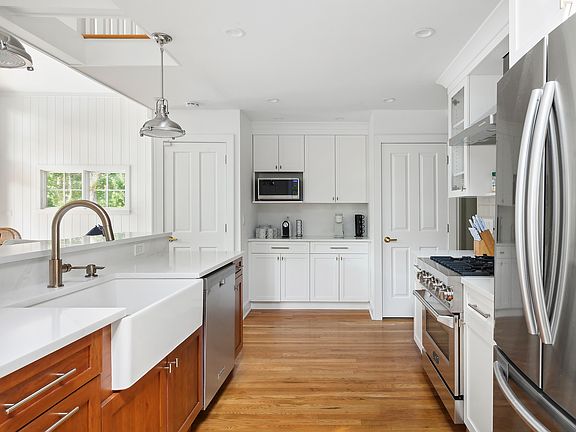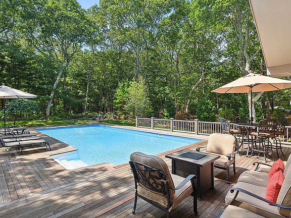 Rental Registration #: 24-923 This newly reimagined and newly furnished East Hampton oasis offers a stylish beach retreat. The property offers 4/5 bedrooms of space, 4 full bathrooms, a great room, 2 fireplaces, and garage parking.This spacious home was masterfully finished and boasts an open concept with gorgeous interiors. Among other high-end details are a chef's kitchen and multiple doors that lead to an outdoor oasis - an extensive deck with a heated pool, outdoor grilling area, gas fire table, and manicured landscaping to enjoy a full acre of privacy, perfect for entertaining. An abundance of natural light accentuates the living area with double height ceilings, open concept, and wood burning fireplace, perfect for guests relaxing with extra privacy, workspace, or lounge area. Step into the luxurious en suite primary bedroom located on the primary level floor, with custom closets, wood burning fireplace, with bathrooms that are the epitome of understated elegance and spa-like accents. A second en suite junior primary bedroom is located on the primary level along with the third bedroom. The fourth en suite bedroom is located on the ground floor with separate entrance from the front of the property. The upstairs loft is bonus room that can be used for lounging, entertainment, TV, or additional guest quarters.