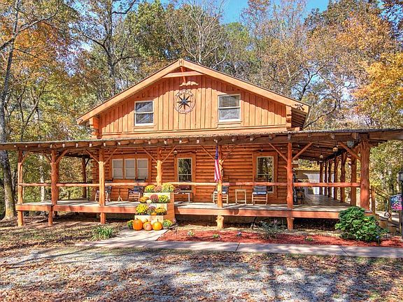 Custom log homeSoaring ceilingsBeautiful graniteVery little mowingWrap around porchesOpen floorplanLong level driveway