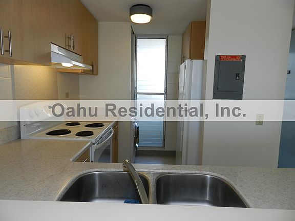 Spacious remodeled 786 sq. ft. unit with great flow-through ventilation in convenient Liliha (mauka of Liliha Bakery and mauka/ewa of Kuakini Medical Center). Appliances include smooth top range with self-clean oven, range hood, refrigerator, disposal, dishwasher, full-size washer and dryer, two air conditioners. Assigned covered parking with gate entry and storage cabinets. City view from lanai. Pleasant low-rise building circles a natural spring with colorful koi. Pool, barbeque area, recreation room, resident manager. Adjacent to Kunawai Spring and across the street from Kunawai Playground. NO PETS, NO SMOKING OF ANY KIND IN THE BUILDING. $20/adult application fee. Rent includes water, sewer, hot water and basic cable. Initial one year lease. NO SMOKING OF ANY KIND: NO PETS.