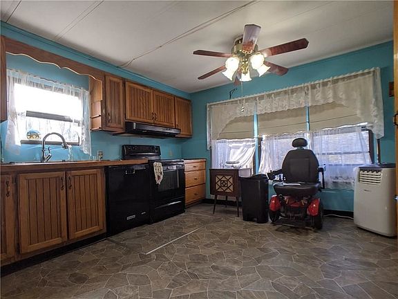 This mobile home has many great features. More than three acres of land, a detached barn/garage with two spaces, a large back deck, covered front porch, handicap accessible features, newer furnace, and open living room and kitchen area. The interior has many updated cosmetic features, all appliances will transfer with the property and the additions added on to the original mobile home add good livable space. Call for a showing today!