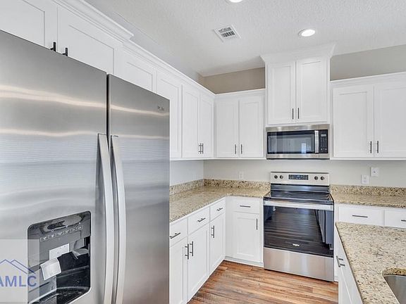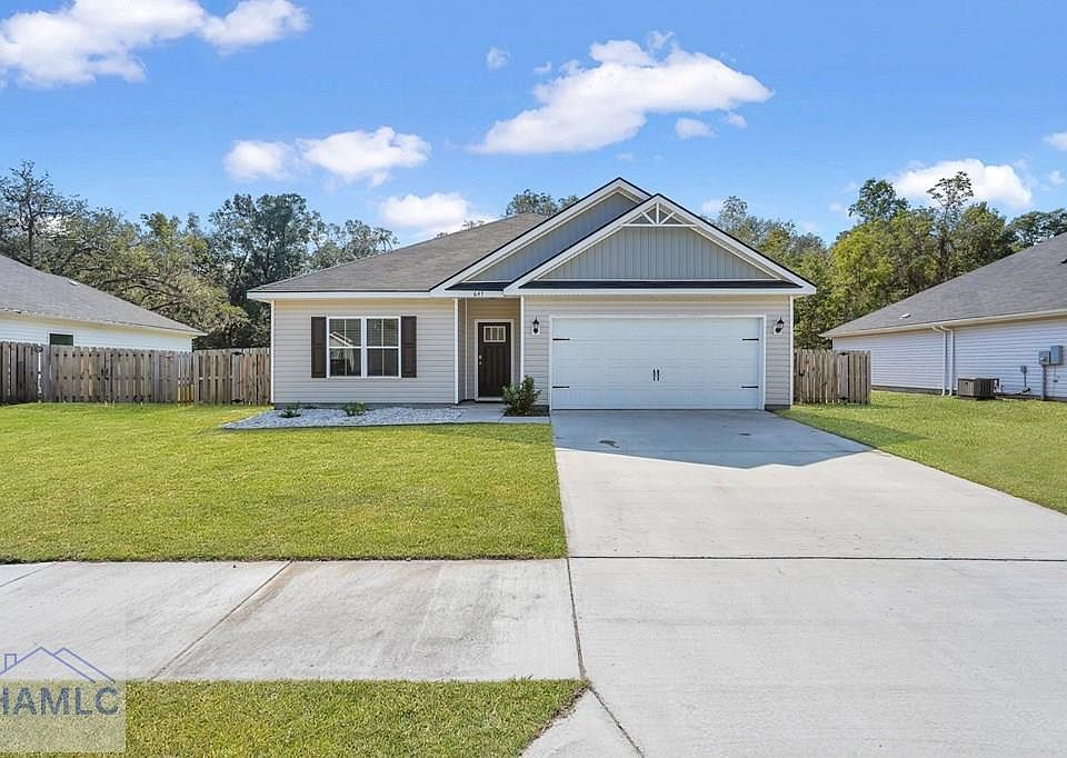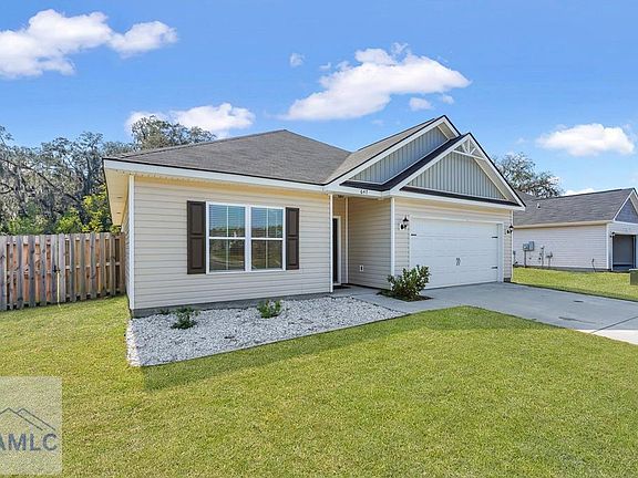 Welcome to this stylish 3 bedroom, 2 bath, newly built home. Featuring timeless white cabinets, stainless steel appliances, beautiful contemporary light fixtures, granite counter tops & breakfast bar. The spacious primary bedroom has plenty of walk-in closet space, with spa-like Owner's bath offering a large soaking tub for relaxation, seperate shower, and dbl vanity. Enjoy the privacy of a fully fenced backyard backing up to serene woods, and a irrigation system to keep the yard looking fresh. If you love to golf , you can jump in your golf cart and head to Cherokee Rose Country Club, just a mile away. If you are PCSing here, welcome! you are only 15min from Ft. Stewart.