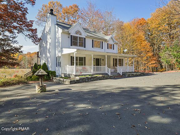 This home has it ALL! This beautiful colonial home is fully loaded and ready to move in! Boasting a large master suite with balcony, a hot tub room with walk out access to the pool and a private DOUBLE LOT, you will be in serenity. The large deck and patio with built in fire pit for entertaining is the icing on the cake! This home offers 5 bedrooms and a total of 3 full bathrooms. The lower level is fully finished with space for a pool table and so much more. Kitchen has granite countertops, tile backsplash and plenty of cabinet space. Deck offers a beautiful, private view. Home is close to shopping and major Pocono attractions. Come see this stunning property today!