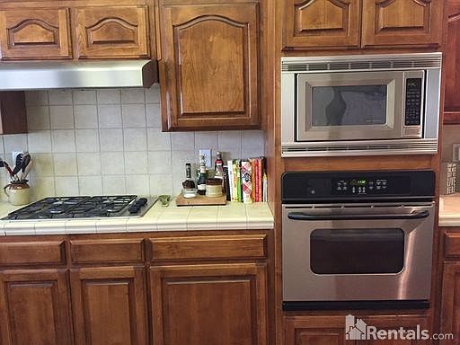 Available July 15. This beautiful 5 bedroom 2 bathroom home has 2261 sq. ft. and was built in 2004. Great entertaining space in the backyard with a covered outdoor kitchen with granite counter tops, sink, BBQ, Two burners, ice maker, and TV including stereo speakers! Inside has great custom dark wood laminate floors throughout with carpet in bedrooms. Kitchen has stainless gas range, microwave, pantry, breakfast bar, and the sink has a bay window view of the front of the property. This home is energy efficient, new paint. Ceiling fans throughout. Master bedroom is spacious with a sitting area attached, large walk in closet and back patio access. Master bathroom has dual sinks, shower and separate soaking tub. Second bathroom has dual sinks and tub/shower. Laundry room leads to the attached 3 car garage. No pets. Quiet neighborhood one block north of Woods Elementary School. Renter's Insurance is required. Yard care is provided. Cross streets are Clovis & Teague. Call 559.324.9400 to schedule an appointment. BRE# 01866910.