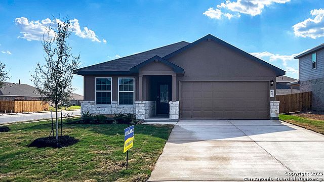 The Knight is a single-story, 1901 square foot, 4-bedroom, 2 bathroom, layout designed to provide spacious, comfortable living. The inviting entry opens to a large decorative wall nook and a spacious open concept family room and eat-in kitchen that is perfect for entertaining friends and family. The kitchen is complete with beautiful granite countertops, stainless steel appliances, classic white subway tile backsplash, and an oversized kitchen island. Two secondary bedrooms and the second full bathroom are located of the entry to the home and a third bedroom and utility room are located off the kitchen. The private main bedroom is located at the back of the house and features a large, relaxing ensuite bathroom complete with a separate tub and shower, dual vanities, water closet, and spacious walk-in closet. Additional features include 3-sides of exterior masonry, tall 9-foot ceilings, 2-inch faux wood blinds throughout the home, luxury vinyl plank flooring in the entry, family room, kitchen, and dining area, ceramic tile in the bathrooms and utility room, pre-plumb for water softener loop, and full yard landscaping and irrigation. You'll enjoy added security in your new home with our Home is Connected features. Using one central hub that talks to all the devices in your home, you can control the lights, thermostat and locks, all from your cellular device.