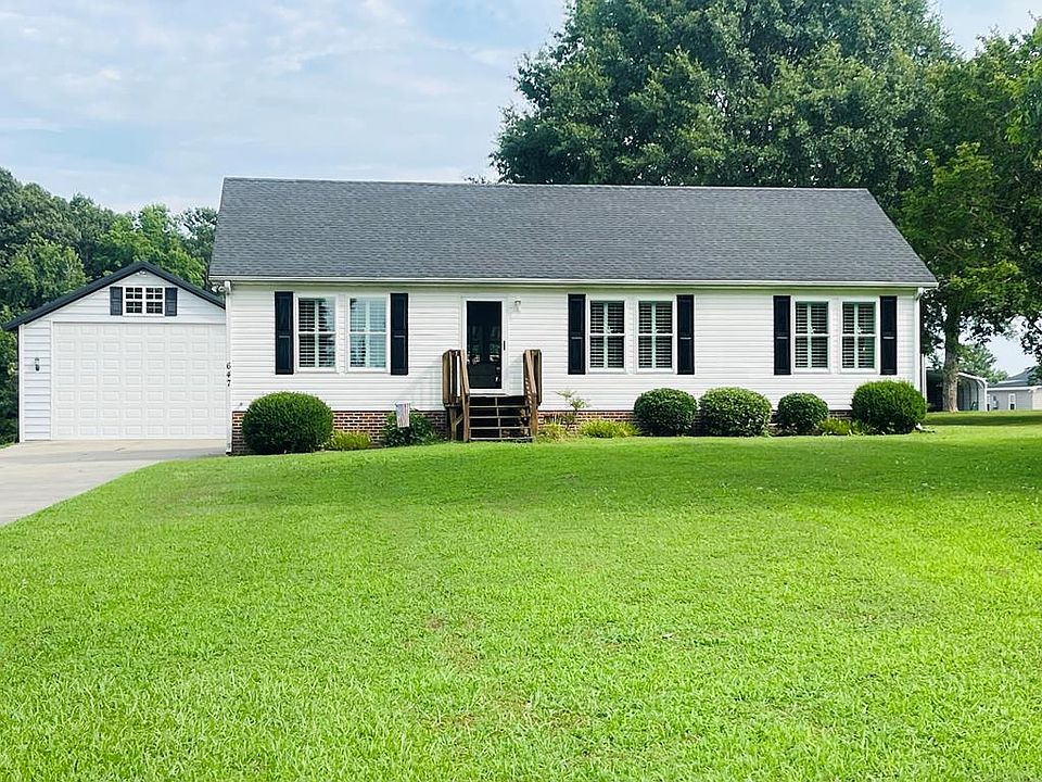 Welcome to Palmer Point, where this furnished 3 bedroom, 2 bath home with lake access is waiting for you! From the moment you walk in, it feels like home. With an open floor concept, the main area of the home offers the perfect flow for entertaining guest, the primary suite has a private bath, with double sinks, soaking tub/shower combo and an extra-large walk-in closet. Two additional bedrooms are located on the other side of the home along with another full bath. If outside entertaining is preferred, the back patio is a nice place to relax, with mature landscaping and a retractable susnsetter awning. The 24x36 pull through garage also has a covered side that is currently used as a carport and outside entertainment area. The garage has an insulated interior, its own breaker box, double pane windows, private entrance door and extra tall rolling garage doors so even your biggest lake toy should fit! Some of the home improvements include, plantation blinds, Pella windows & a 2018 heatpump. There is not a private dock, but there is lake access from your back yard down to a sandy beach area where you can enjoy the lake and pull your boat to shore for limited times.