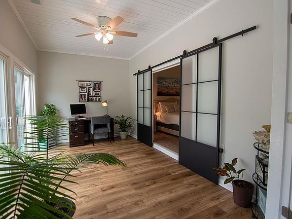In search of a turnkey, well-maintained home? Would living in a desirable resort style community with palm trees, pools, lazy river, cabanas, fitness center, tennis courts, exercise/walking paths and sidewalks make it a better deal? This community, Tuscany The Resort, is located within minutes of the beach, healthcare, grocery, restaurants, fitness and all coastal life has to offer. Schedule your personalized tour today - you'll love it here! This floor plan has the open concept spaces to entertain or simply relax in your own oasis. Privacy is included with this home as the property lot backs up to a protected wooded space. Inside the home you'll enjoy fully open concept kitchen/living areas and EASY access to the owner's first floor bedroom/bathroom suite. The second bedroom is also located on the first floor. The Carolina room has been updated to serve a suite of options such as an extension to the owner's suite, office or simply more common area space - it's a delight. The second floor bedroom + bathroom is perfect for short term guest visits or simply a full time bedroom. Ongoing property lawn and tree maintenance is included with HOA. Don't delay, contact the agent as this home will sell quickly!
