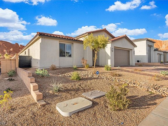 Mesquite Nevada offers a newer Pulte built single story home that is surrounded by mountains and mesa backdrops. It is located near hiking, biking and off road trails and is centrally located between St George Utah and Las Vegas Nevada. This breathtaking home holds 3 bedrooms, 2.5 bathrooms and den/office with a generous size great room that is adjacent to the striking kitchen that has had many finishing touches added to it! This chefs dream comes true in the kitchen and offers stainless steel appliance, large island with a pull up breakfast bar that sits 4, crisp white cabinets and quartz counter tops with a designer backsplash completing the fine details. The primary bedroom is on the opposite side of the home then the guest bedrooms for privacy. This home has a 4 car garage and will fit all of your cars! Enjoy your evenings in the backyard under the shaded covered patio and enjoy your low maintenance backyard!
