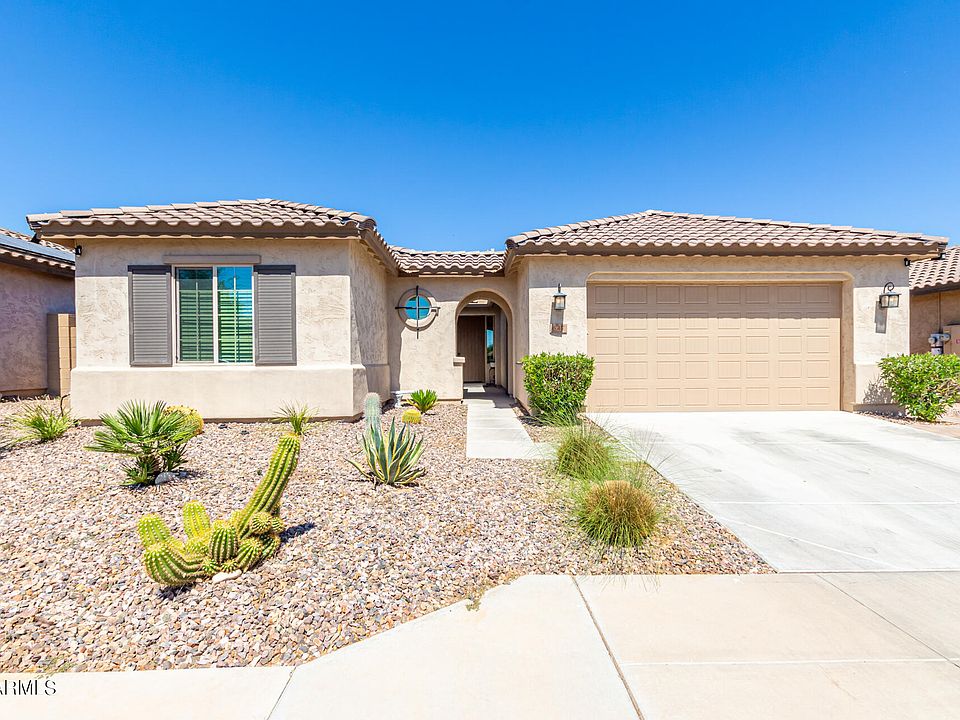 Great opportunity to own updated, beautifully maintained home in Blue Horizons community of Buckeye. Well-designed split floorplan. Modernized throughout with new light fixtures, ceiling fans, wood baseboards, tile flooring, granite counter tops. Bright, airy with crisp paint, neutral colors. Home boasts four bedrooms, four bathrooms. Three bathrooms ensuite. Oversized fourth bedroom offers separate entrance, living quarters, kitchenette, bathroom and dedicated bedroom creating a ''casita'' within existing home. Garage floor updated with epoxy. Home exterior features newly installed desert landscaping, backyard artificial turf. Covered patio with retractable sun shades. Side yard pavers. Freshly painted exterior block walls. True pride of ownership. A special property perfect to call home