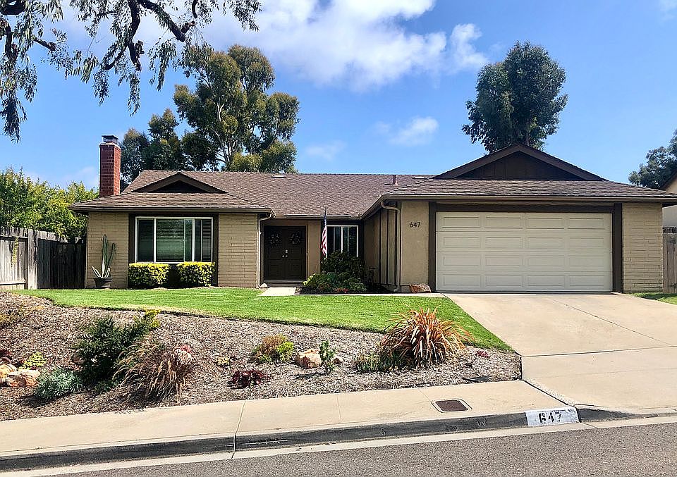 Spacious 1 story home on a huge lot! Hard to find in Encinitas. Close to all shopping, short drive to Cardiff down Manchester or Moonlight down Encinitas Blvd. Huge 10,300sf lot has a fenced-off slope in back, south-facing, perfect for a terraced garden! This slope means beautiful views to the south and a very private yard. Brand new carpet 09/2016, wood-look vinyl and laminate (all installed within the last 4 years), kitchen features quartz countertops and glass tile backsplash done 5 years ago. No HOA or MELLO ROOS!