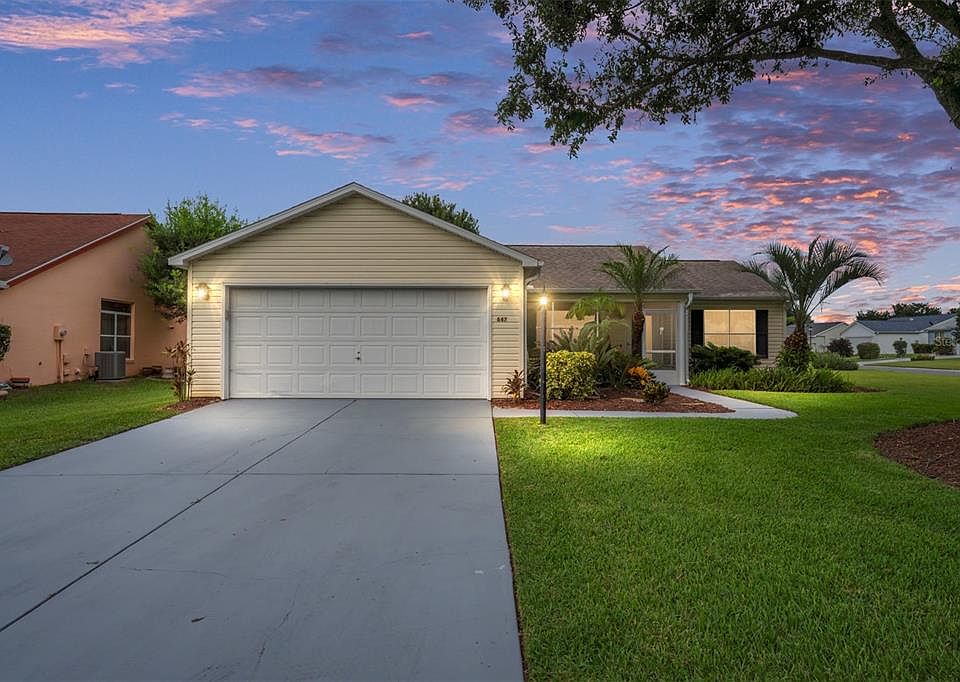 Location, location, location! Conveniently situated just a short ride to Spanish Springs and Lake Sumter Landing! NO BOND! Welcome to this beautifully updated 2/2 Galveston Ranch home on a private corner lot with a 2-car garage, offering the perfect blend of style, comfort, and convenience. The inviting COVERED FRONT PORCH is perfect for enjoying morning coffee or an afternoon cocktail! This well-maintained home features a comfortable SPLIT FLOOR PLAN that has been freshly painted with NO POPCORN ceilings and has NEW LVP flooring throughout (NO CARPET). The kitchen boasts GRANITE countertops, a farmhouse stainless steel sink, WHITE CABINETS that reach the ceiling, and NEW SS appliances. The primary bedroom includes a large WALK-IN CLOSET with BUILT-INS and an updated bathroom with a GRANITE countertop, a STEP-IN SHOWER, and a linen closet. The guest bedroom has a ceiling fan and a WALK-IN closet, with the guest bathroom across the hall featuring GRANITE countertops and a TUB/SHOWER combo. This LOCATION is EXCELLENT—take a quick golf cart ride to Spanish Springs Town Square or Sumter Landing! Golf, pickleball, swimming pools, recreation centers, and a variety of shopping, dining, and medical services are all conveniently close. Contact me today to schedule your private tour!