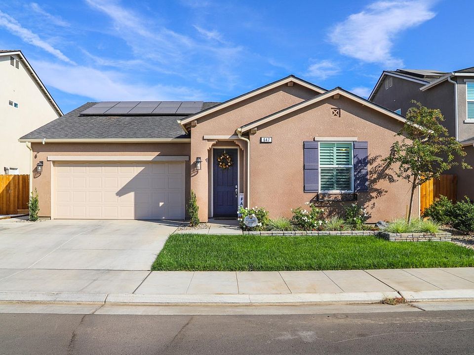 Step inside this adorable Wathen Castanos home and be impressed with the pride of ownership and many featured upgrades. Truly turn-key and ready for its new owner. This home features quartz countertops and a farm sink in the kitchen, a large open-concept living space, and a custom built shiplap faux fireplace. You will love the backyard with an extended covered patio, custom-built firepit, and your own personal putting green. The northern exposure, solar, and tankless water heater help keep this home energy efficient. Close to several parks, and walking trails and conveniently located close to shopping, schools, restaurants, and freeway access. You will not want to miss this one. Schedule your showing today!