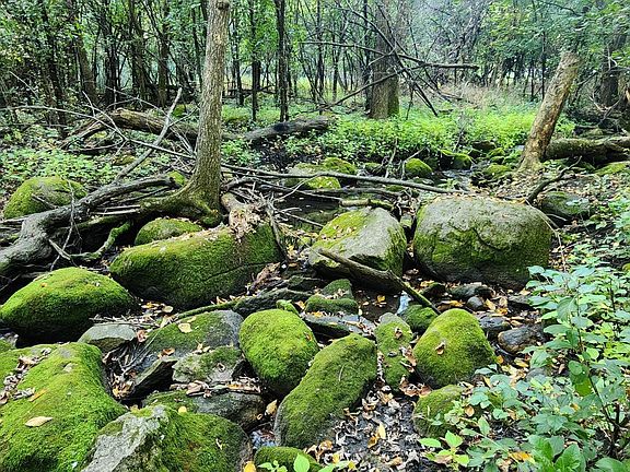 At the edge of city living and the country there is this unique home, with acres of freedom for enjoyment and relaxation, and city water/sewer on paved road. Arrive through the half moon driveway with entrance and exits to Stagecoach RD. Enjoy bonfires, the sounds from the stone lined creek, a full length deck and walkout patio on the back of the house with equally beautiful views from inside through the oversized glass covered living room and family room facing the backyard on the south side. Main level large bedrooms, main full bath, and open floorplan from kitchen to living room. A direct vent gas stove brings the outdoors in while keeping things clean and efficient. Travel down the wide and open top staircase to the family room, and find two more bedrooms, a bathroom, and a laundry room. Find solitude with a heated and cooled bonus room attached to the detached garage, or the extra deck outside of it, and a finished shed for your cold storage or other hobby. Welcome home!