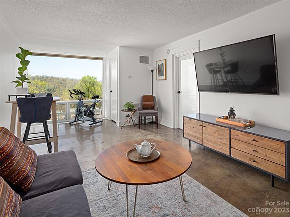 At the top of Town Mountain yet so close to all of Asheville! This one-bedroom third-floor condo has wonderful sunrise views looking east over mountains through floor to ceiling windows, this space is bathed in warm light and a feel of big sky and nature all around! Concrete floors, tile in bath and kitchen. Your residence offers a private pool area with space to spread out, complete with grill and kitchen amenities and a storage area for your bike. Laundry rooms on 4th and 6th floors. Water (and hot water) and sewer is included in the HOA fee. In less that 10 minutes you can be in Downtown Asheville enjoying all of that, or head towards the Blue Ridge Parkway for a hike or scenic drive... A fantastic opportunity to secure your own place in Asheville!