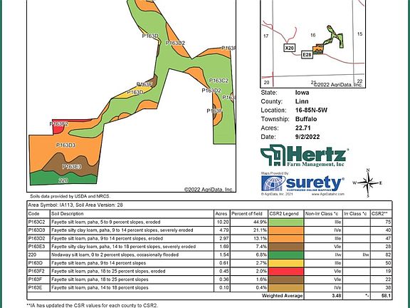 140.04 Acre, one-of-a-kind property located just east of Waubeek in the rolling hills of Linn County. It includes a nice country home, well-maintained outbuildings, pasture, cropland and mature timber with an abundance of wildlife. Attractive, 1½-story home built in 2018. 876 sq ft finished living space with vaulted ceilings in the open-concept, eat-in kitchen and living room. Bedroom and full bath on the main level with 2nd bedroom on the upper level. Walk-out basement includes a rec room area, kitchenette, storage room and utility room with laundry sink, shower and toilet. Relax and enjoy the country views from the wrap-around porch. 32' x 40'-Insulated shop w/ concrete floor & 12' x 12' overhead door (2007). 16' x 40'-Lean-To w/ concrete floor (2007) 24' x 42'-Livestock barn w/ lower level loafing area (2010). 22' x 32'-Loafing shed open to the south (2008). 28' x 32'-Corn Crib (1950). 6' x 32'-Lean-to on crib (2007).