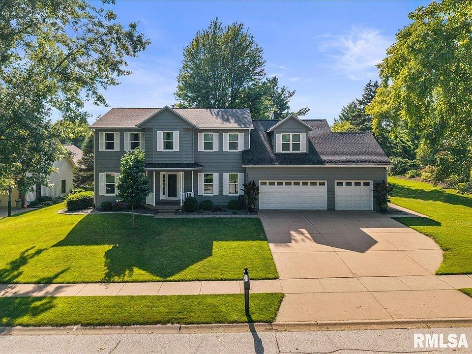 Situated in the highly sought-after Crow Valley area of Bettendorf, this classic 5-bed, 2.5-bath Colonial-style home offers timeless charm, abundant space, & modern updates. Featuring a 3-car garage, dual-zoned HVAC, & spacious rooms throughout, this home is just minutes from Crow Valley Country Club. The main floor has a den/office, a living room with a gas fireplace, a formal dining room, an updated kitchen w/ Cambria countertops, island, & pantry, a designated laundry room, bathroom, & a main-floor bedroom with access to the back deck. Upstairs you'll find 4 additional bedrooms, including a primary suite with a private full bath & a cozy sitting area nook. The finished basement offers a huge rec room & 2 extra rooms for storage or hobby space. Outside, enjoy the tranquil backyard with a shaded porch, patio, flat yard, shed, & mature trees. Major updates include: roof, garage doors/openers (2021), Pella windows, kitchen cabinets (2022), house exterior painted & internal sewer drain replaced (2024). A rare find in an incredible location!