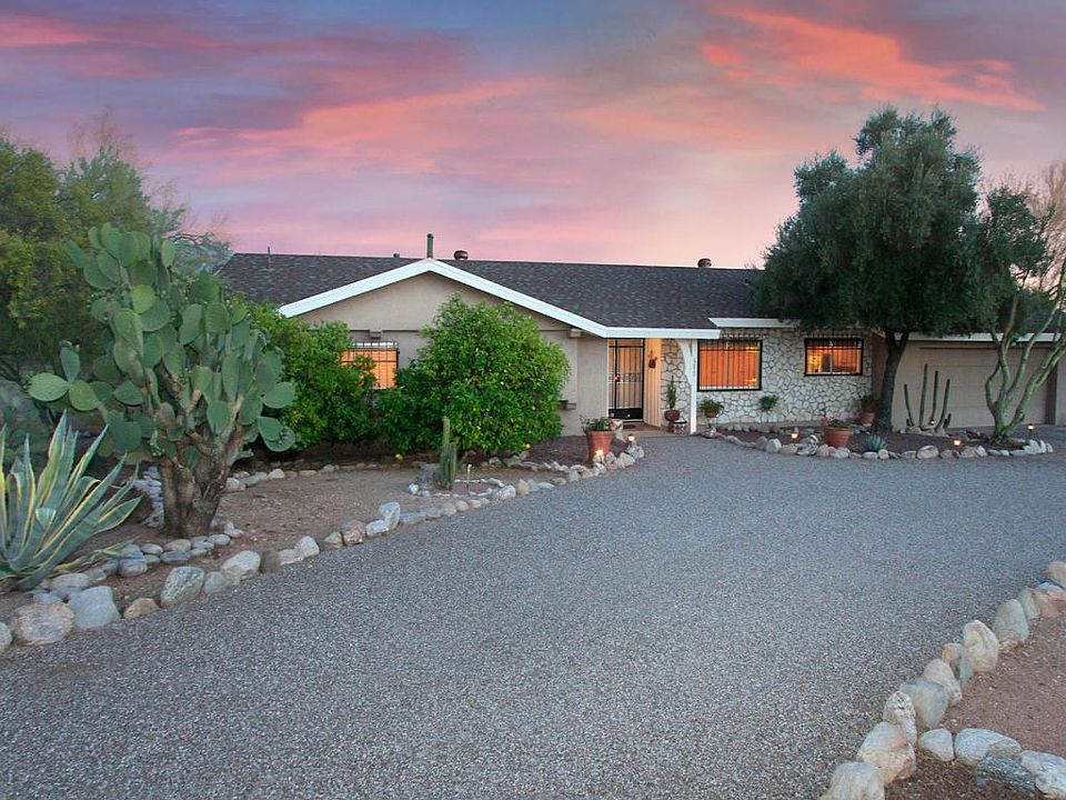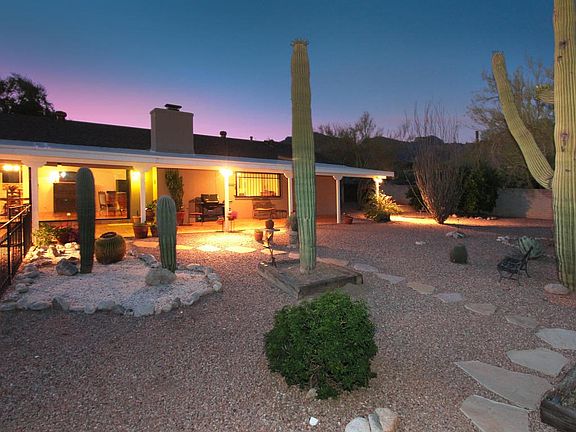 Charming, well-built & cared for foothills hacienda. Rock faced front exterior & double doors welcome you to this peaceful foothills setting! All saltillo tile through-out the home. The flexible great room has the fireplace & wall of glass to the lovely saguaro-studded cactus garden in the backyard!(Even the full length covered patio has saltillo tile.)Makes dining al fresco a delight!Outdoor private fenced shower off the pool/workshop-with a toilet & sink on the inside of the workshop. Over-sized garage with a refrigerator that can stay. Lots of Mexican charm through-out. Even a diving pool. Views are fantastic & private. Citrus trees add to the outdoor setting & easy-care lifestyle.Extra wide hallway, gas burning fireplace, extended garage, block/stucco construction completes this home.