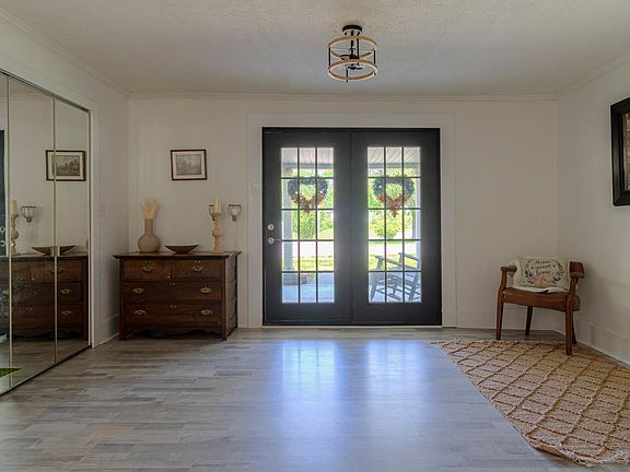 Rustic charm meets boho flair in this beautifully remodeled Cape! Exposed wood & brick, French doors, new modern lighting, easy care flooring, plus new water heater, windows, outlets, appliances, HVAC & tiled bath! Cozy yet contemporary vibe in living rm w/skylights that add natural light &eye-catching brick fireplace creating a comforting atmosphere. Upgraded kitchen shines w/granite counters, backsplash, cabinets galore, pantry & new SS appliances. Dining rm off kitchen for easy entertaining w/sliding door to porch for al fresco dining! Primary retreat w/modern chandelier, huge WI closet & sliding barn door for some serious vintage charm. Soothing 2nd bed with exposed brick & sitting area, upper 3rd bed. Walk-in, tiled shower & 2 vanities highlight beautifully updated bath.