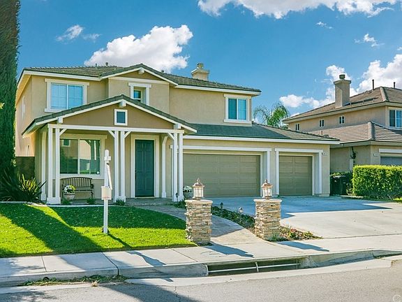 Beautifully upgraded Eastvale home in the Heartland community featuring 5 bedrooms, 3 full baths, 2668 square feet built in 2004. New carpet and new interior and exterior paint. The home features an open floor plan with Formal Living and Dining Room, Family Room, tile and carpet flooring in bedrooms. Relax by the fireplace in the family room. Large stone island and countertops in the Kitchen, double oven, and walk-in pantry. New fixtures in kitchen and bathrooms. New vinyl blinds in kitchen and family room. The home features a downstairs bedroom with a full bath conveniently located for a guest or family member. The upstairs features an additional 3 bedrooms and a large Master Bedroom with master bath and x-large walk-in closet. Large laundry room with sink upstairs. There is a 3 car garage with direct interior access. Dual central A/C. Located close to schools and shopping. Walking distance to Harada Heritage Park featuring baseball fields, batting cages, soccer fields, playground, skate park, community center, and dog park. Close to local freeways 15, 60 and 91 freeways.