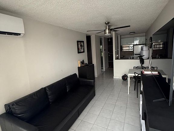 Remodeled Studio converted to a one bedroom/ 1 bath, renovated kitchen, bath. It includes stovetop, refrigerator, water heater, 2 A/c Inverters, 1 assigned covered parking. The apt has beautiful lateral ocean and city views. The condo has 24 hr security, common area laundry, gym, swimming pool. It is just steps to the beach. No pets allowed. No short term rentals.
